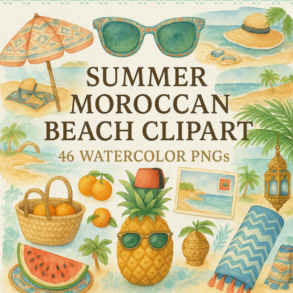 SUMMER MOROCCAN BEACH CLIPART BUNDEL-46 WATERCOLOR PNGs